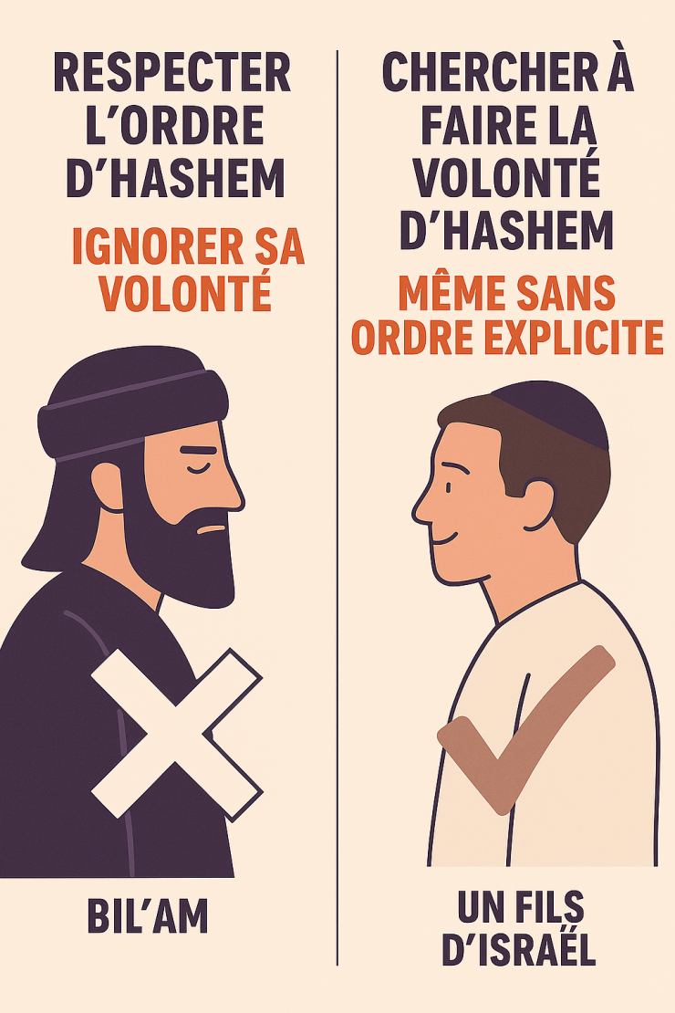 Cela révèle la nature profonde de Bilam : bien qu’il connaissait la pensée divine — yodea‘ da‘at ‘Elyon — cela ne le rapprochait pas d’Hashem. Il n’obéissait que contraint, uniquement lorsqu’il n’avait pas d’autre choix. Comme un serviteur qui ne respecte les ordres de son maître que sous la pression, sans aucun amour ni engagement personnel.