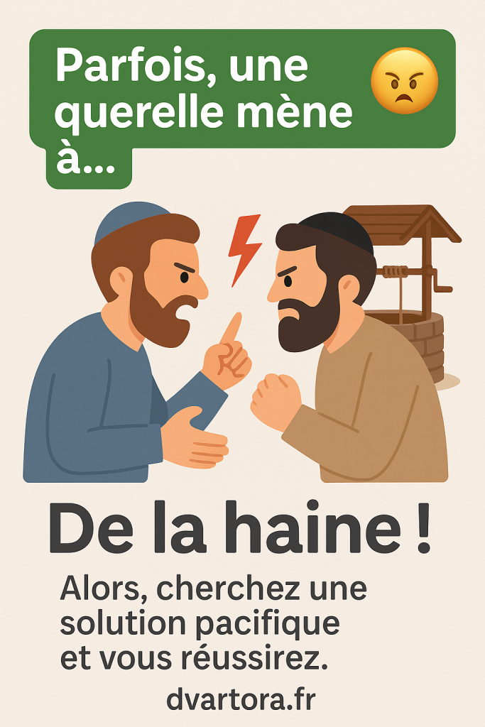 Voici un formidable enseignement pour nous ! Parfois, une dispute éclate autour de choses minimes, mais si on laisse la querelle durer, elle se transforme en haine véritable. Par contre, lorsqu’on sait céder, s’éloigner de la tension et chercher une autre voie, on mérite alors la bénédiction, l’expansion et la réussite — tout comme Its’hak, qui après s’être retiré, entendit : « Car maintenant Hashem nous a élargis ».